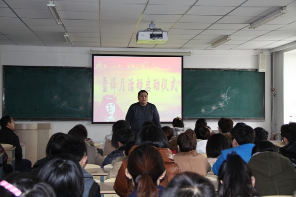 学生党支部书记郑洪斌和各团支部全体成员参加启动仪式。向全院同学发出学习雷锋事迹的号召,要求各班团支部通过主题团会等活动形式加大雷锋生平事迹和雷锋精神内涵的宣传力度,渲染学雷锋氛围;充分利用自身条件和资源,组织学生深入社区、参加义务劳动等,弘扬雷锋精神,让雷锋精神处处闪光。