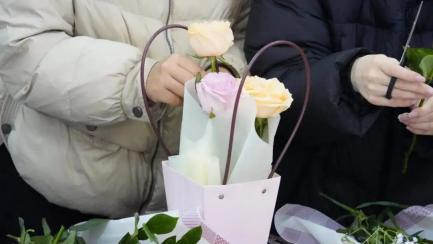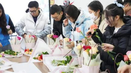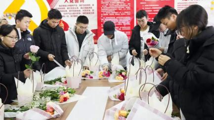 雨露志愿者协会在湖东社区新文明志愿者实践站开展了插花活动。
