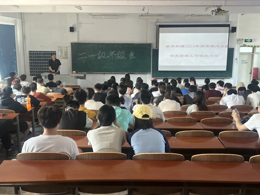 为此,我院辅导员老师们分年级召开了年级大会,线下传达给了每一位同学,同时,安抚好学生的情绪,高考期间需掌握所有学生在校情况和去向,原则上在校学生高考期间不得离校,确因端午节小长假回家或有特殊情况需离校外出的,要严格执行请销假制度,由本人提出申请并作出承诺,辅导员老师和学生家长取得联系确认后,经新澳彩开奖直播