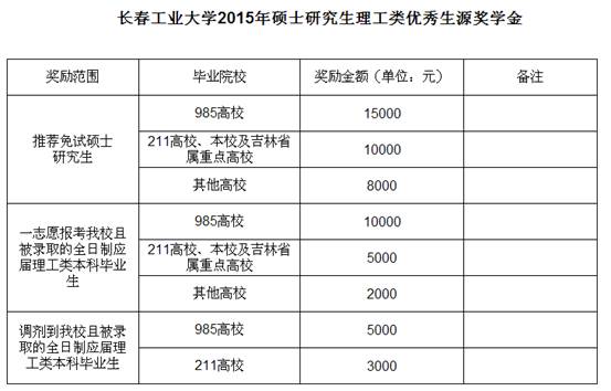 长春工业大学2015年理工类硕士研究生招生奖励政策的补充通知