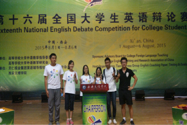 英语辩论赛前夕,秦萌和李博与队友商讨战略战术,进行模拟辩论练习,功不负有心人,在辩论赛中,他们发挥出色,抓住对方论述错误主动出击,细心总结,最终赛出了好成绩。