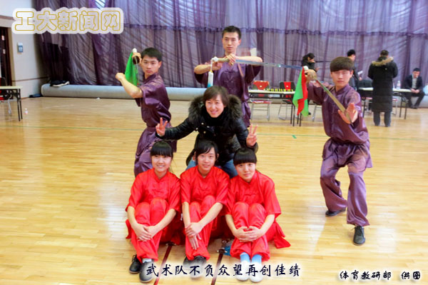 3月10日下午,我校传统优势和预计夺金项目武术比赛顺利结束,王书雯老师与她的六位“小伙伴”在仅仅集训二十多天的情况下,顶住了夺金的巨大压力,战胜了伤病的困扰,为我校再添两金三银。【男生中间为我院隋海建,获得一金一银】