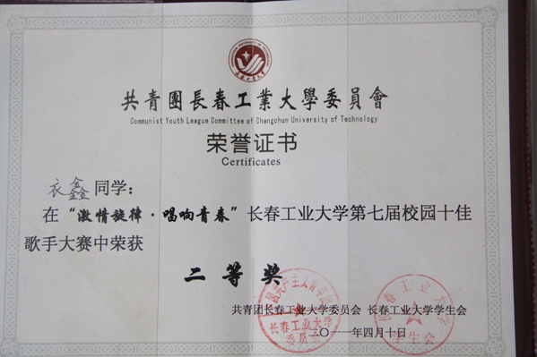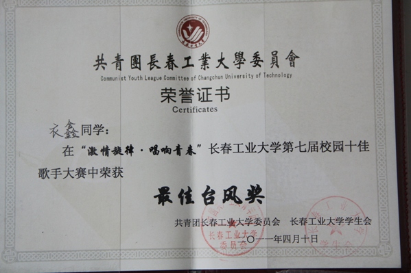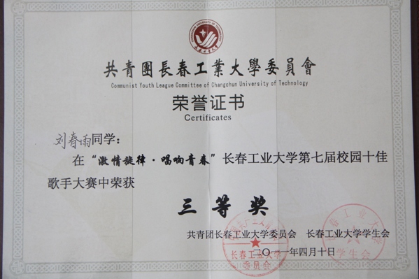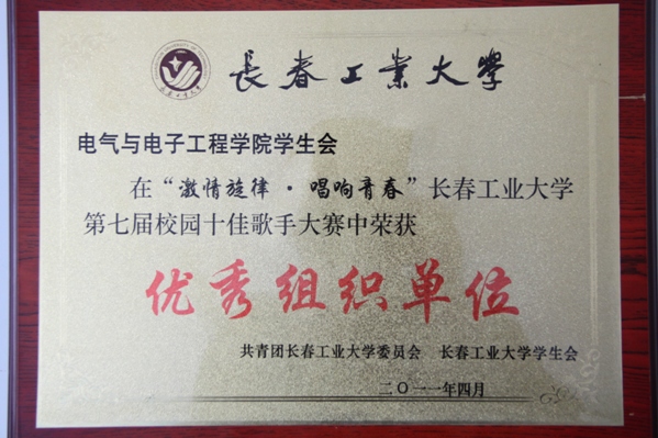 近日,我院学生高文典、衣鑫、刘春雨在“激情旋律唱响青春”长春工业大学第七届校园十佳歌手大赛决赛中分别获得一、二、三等奖,衣鑫并获得最佳台风奖,我院获得优秀组织单位。