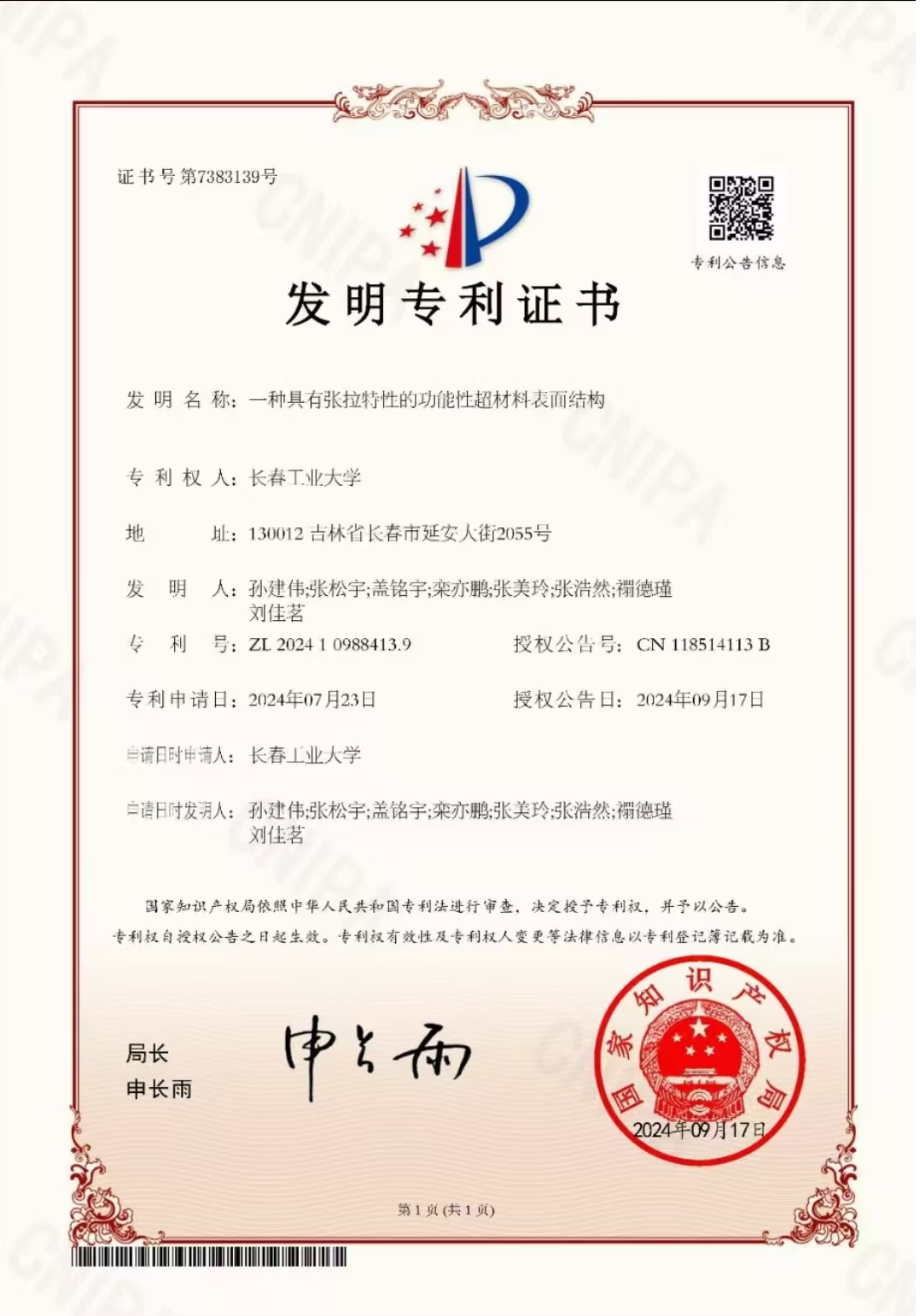 我校学生张建伟张松宇盖铭宇,栾亦鹏,张美玲,张浩然,禤德瑾成功申请专利