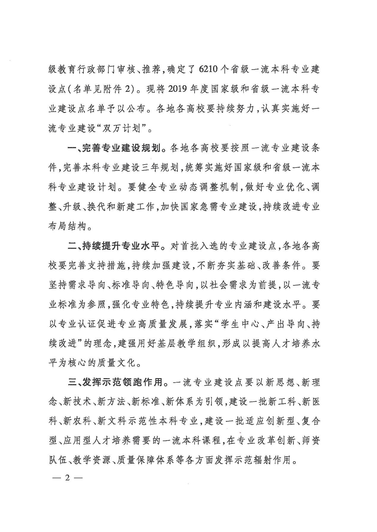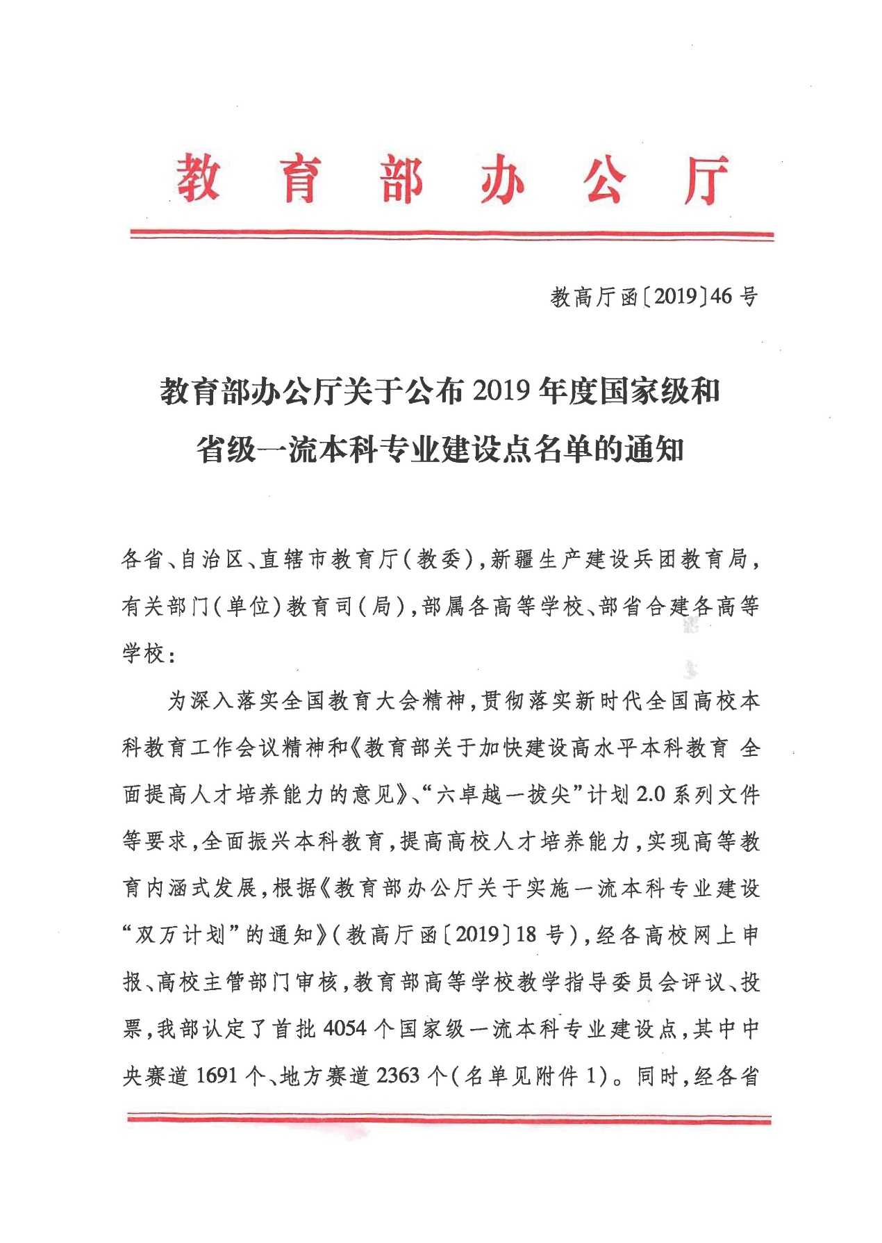 据悉,国家一流本科专业建设“双万计划”面向各类高校、全部专业,突出示范领跑,分“赛道”、分三年建设1万个左右国家级一流本科专业点和1万个左右省级一流本科专业点。2019年,教育部首批认定国家级一流本科专业建设点4054个,其中,中央赛道1691个、地方赛道2363个,确定省级一流本科专业建设点6210个。国家一流本科专业建设旨在深入贯彻落实全国教育大会和新时代全国高校本科教育工作会议精神,以及《教育部关于加快建设高水平本科教育全面提高人才培养能力的意见》、“六卓越一拔尖”计划2.0系列文件等要求,全面振兴本科教育,提高高校人才培养能力,实现高等教育内涵式发展。