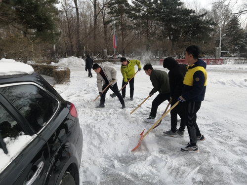 组织全体学生党员及第45期发展对象对分管区域的积雪进行了及时清扫。
