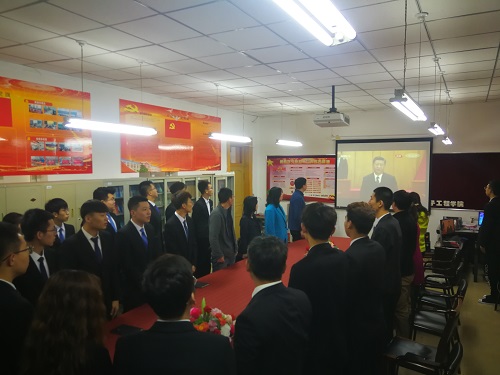 广大学生分别在南湖校区、北湖校区利用教室、宿舍、实验室等不同场地集中或分散观看收听直播。