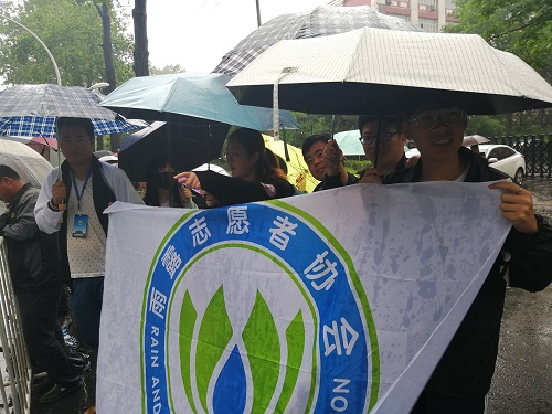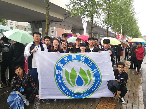 雨露志愿者协会于南湖校区正门暨2018年长春国际马拉松迷你终点组织参加志愿服务活动。