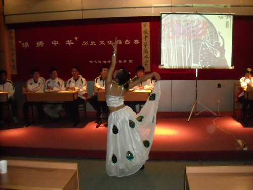 团委书记矫东海老师,学生办公室高博老师应邀出席。 经过一轮轮激烈的角逐,共有五支代表队进入了总决赛。决赛在邰枫同学的书法展示中拉开帷幕。本次比赛分为慧眼识真、风起云涌、拨云见日、心有灵犀、破釜沉舟五个环节,题目涉及了各时期的历史文化知识。同时,各代表队选手知识丰富,思维敏捷,比赛进行的十分激烈。中场环节的观众互动活动猜灯谜为比赛掀起一个小高潮,最后080312班夺得了状元的称号。徐婷的舞蹈《雀之灵》和杨牧的歌曲《笑看风云》为整个擂台赛划上圆满句号。 通过本次擂台赛,不仅弘扬了中国古老而文明的历史,也表现出我院学生醇厚的文化知识内涵,以及对中国文化的热爱。作为新时代的大学生,继承龙脉,传承中华文明任重而道远。
