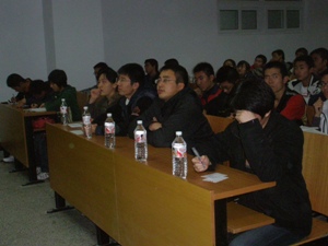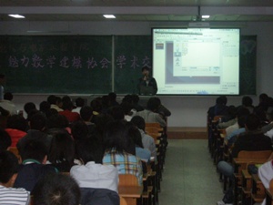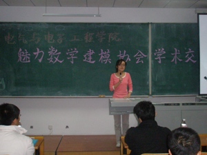 的张超同学、我院的姜鸣燕、姜珊、汪杨、孙磊同学分别就数学建模历史、比赛组织、比赛程序、比赛注意事项等详细向同学们做介绍。会长姜珊同学阐述了数学建模的定义:用数字来描述对象;校记者团团长孙磊通过实例讲解数学建模竞赛过程中论文撰写;院宣传部部长汪洋同学讲解了计算机在数学建模中的应用;徐培新同学重点强调建模比赛中团体协作的重要性;张超同学介绍了自己参加全国数学建模的经历,其中优异的成绩让在场每一个同学赞叹不已!在姜鸣燕同学的讲解中,同学们了解到竞赛报名参赛,以及竞赛期间时间的分配。讲座到了尾声,现场爱好者们争先向交流同学提出自己的疑问,几名同学一一精彩的回答赢得了现场热烈的掌声,最后赵老师对活动进行总结并对全体同学提出殷切的期望。 通过这次学术交流会,同学们对数学建模的知识有了更深的了解,激发了同学们学习数学的兴趣。