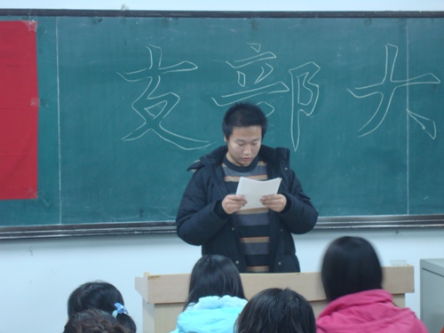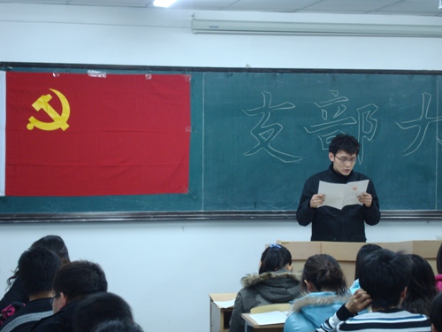 首先进行发展大会,经组织考核,共有25名同学发展为预备党员;随后进行转正大会,共有29名同学转为正式党员。整个支部大会气氛活跃,内容详实、丰富,各位党员同学能够认真的开展批评与自我批评,矫东海老师强调作为学生党员,现阶段应该学习和践行好科学发展观,应该身先士卒、为同学做好表率。