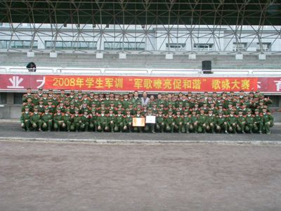 9月24日下午3:30,我校08级新生军训活动之“军歌嘹亮促和谐”大合唱比赛在南湖校区体育场隆重上演,参赛的各院合唱队无论在队貌、选曲和编排方面都精心准备。整场比赛掌声雷动,欢呼声此起彼伏,现场气氛十分热烈。