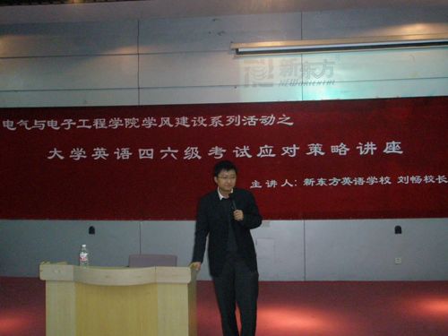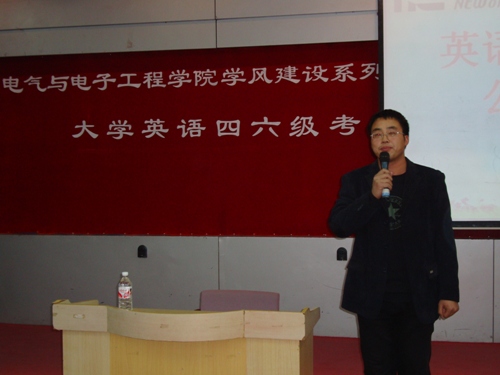 | 英语四、六级考试在即,为促进我院学风建设活动的全面开展,指导学生以良好的心态、正确的学习方法应对英语四、六级考试,我院邀请到了长春新东方英语学校校长刘畅,并于10月28日晚在6:30在综合三为全院学生做了一场大学英语四六级考试应对策略的讲座。07级辅导员赵爽出席并主持。 刘老师从学习能力、学习习惯、英语水平、合理的时间安排、真题模拟五方面向同学们讲述了英语四、六级的应对策略。其中,着重强调了建立“错题集”的重要性,并传授给同学们一些窍门和技巧,最后,刘老师鼓励同学们要树立自信心,鼓励自己,战胜困难。整场讲座在同学们的热烈掌声中圆满结束。   |