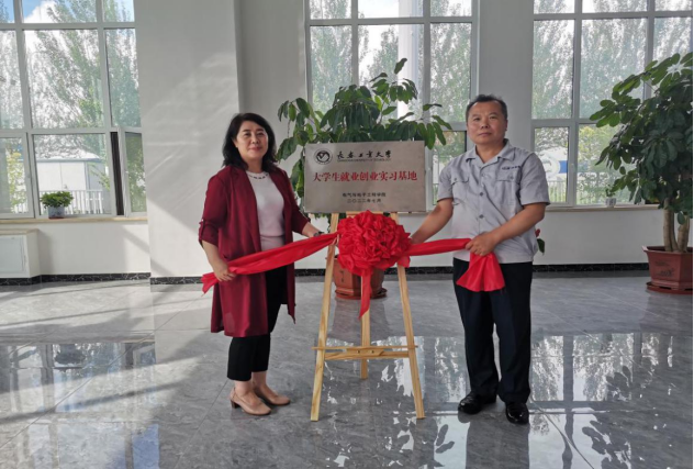 韩顺杰与董旭峰共同为大学生就业创业实习基地揭牌。