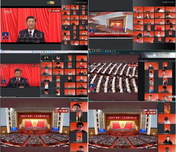 党委组织各党支部全体党员共同收看二十大开幕盛况,许多师生自发通过网络直播收看了党的二十大的开幕式。