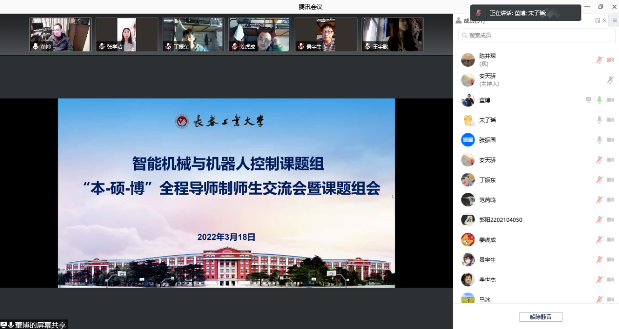 疫情虽然阻隔我们见面,但是阻止不了对学科知识探索的脚步!3月18日下午,智能机械与机器人控制课题组全程导师制的所有老师与同学们在线上召开了一次特殊的组会,此次组会既是学术交流会,也是疫情期间导师和研究生、本科生的工作生活交流会。这也是继2021年课题组在落实新澳彩开奖直播