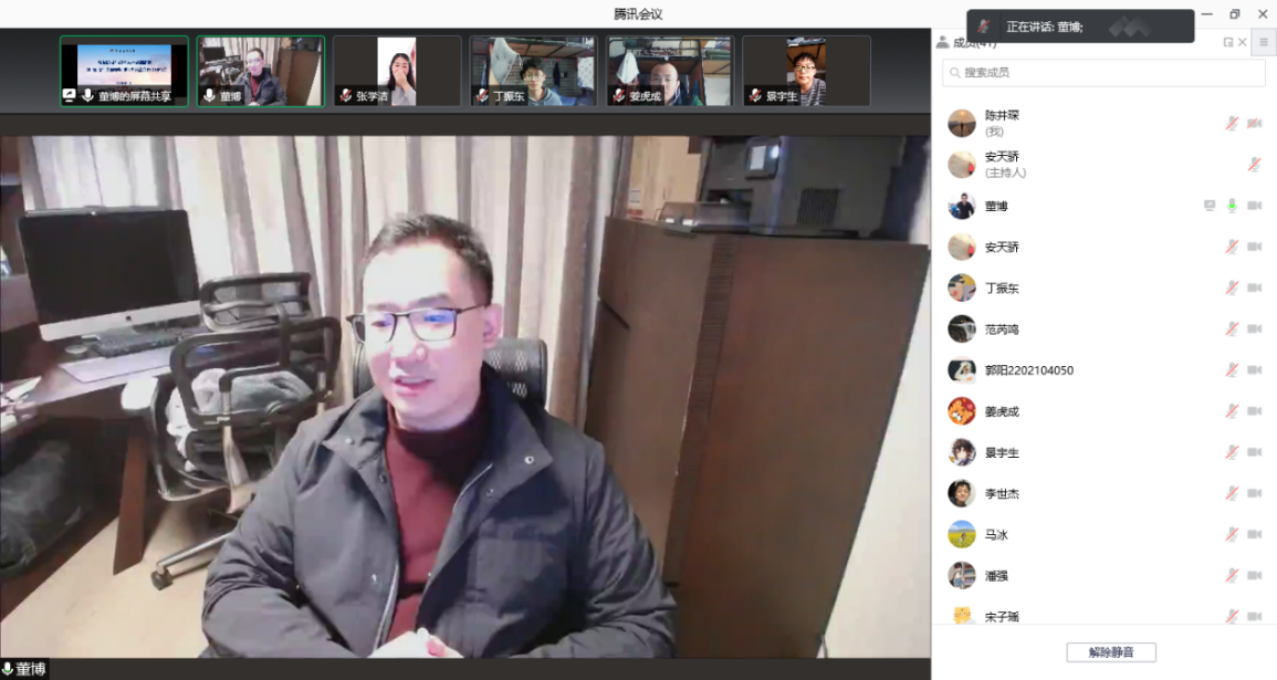 最后,课题组老师们对学生们在疫情防控期间提出建议与意见。此次视频组会的召开,明确了课题组在疫情期间开展工作的重点,稳定有序推进学生们的培养与指导工作。