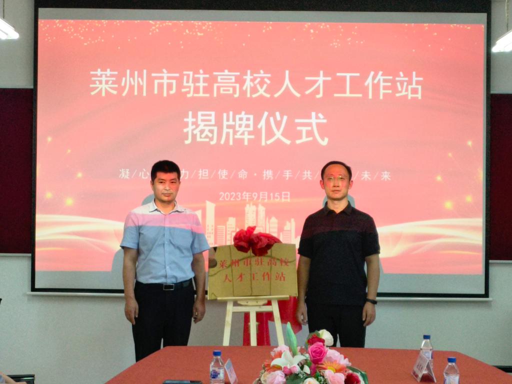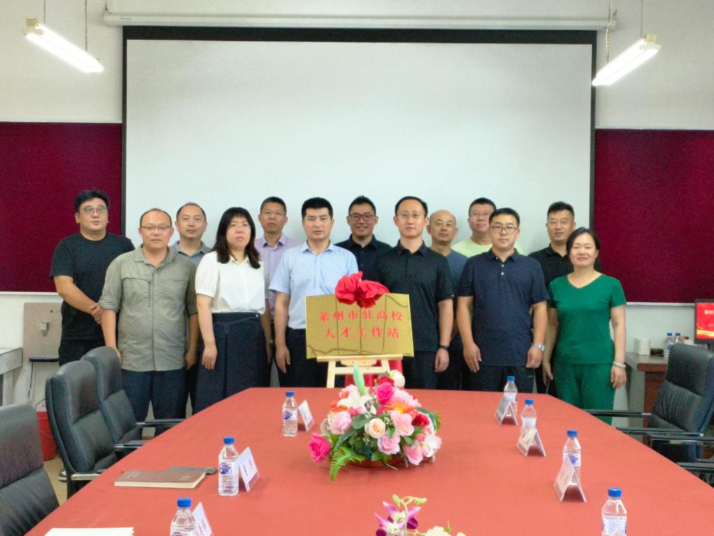 党委书记杨景伟、副院长董博、副院长刘帅师、副院长王申全、副院长杨宏韬、电气工程及其自动化系主任邵向鑫热情接待了来访一行。双方在电气与电子工程会议室举行座谈交流会,会议由董博主持。杨景伟与原磊为莱州市驻高校人才工作站揭牌。