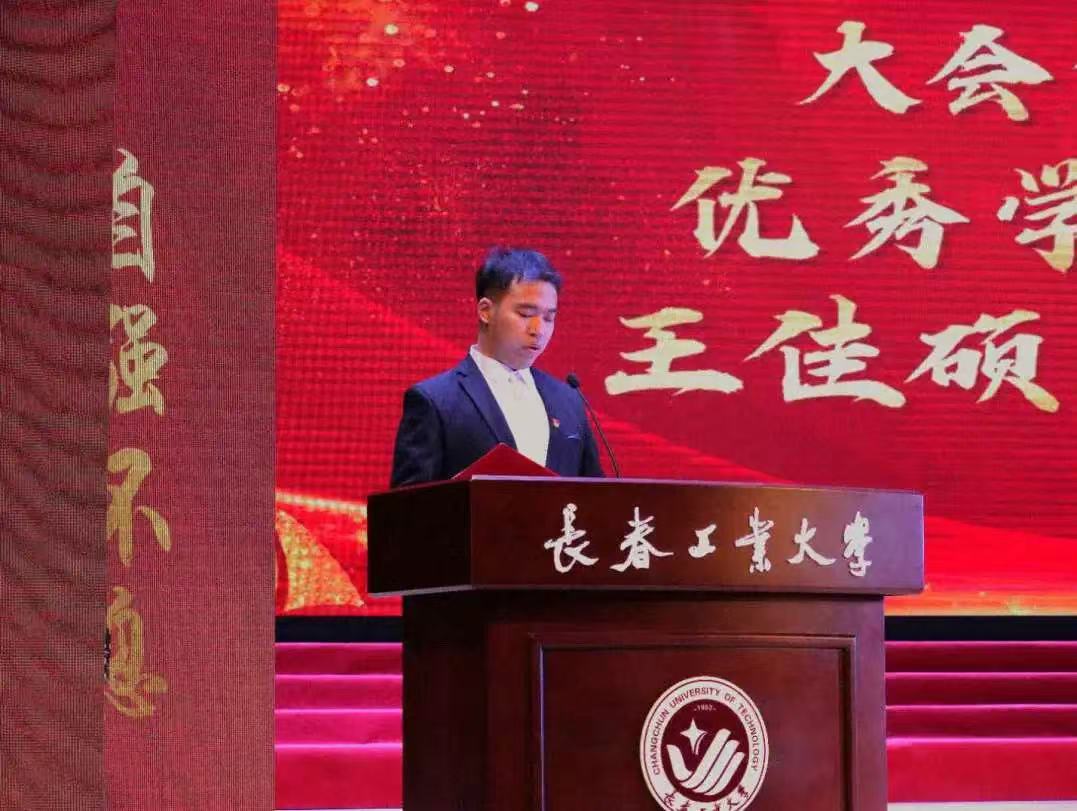 优秀学生代表,校学生会执行主席、校三好学生、国家奖学金获得者王佳硕同学上台发言