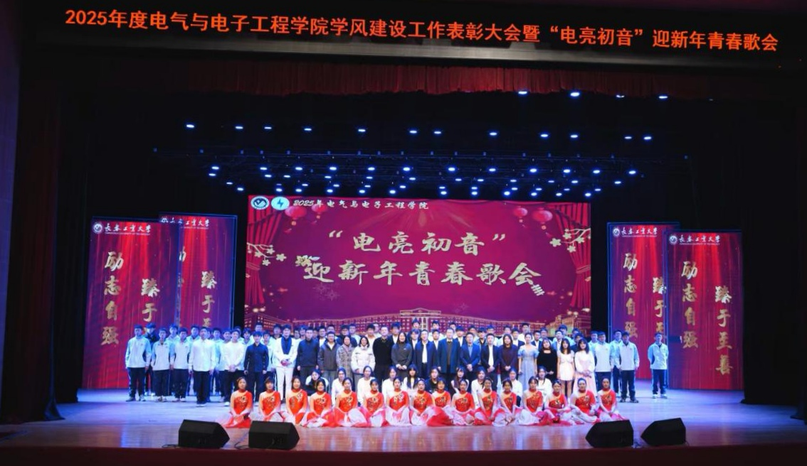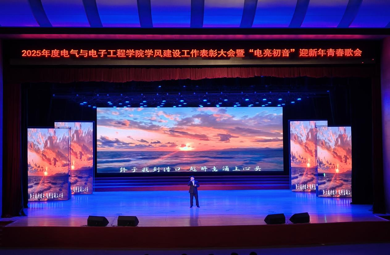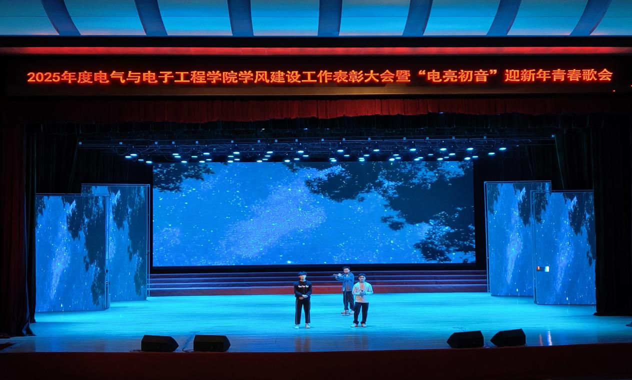 在南湖校区大学生活动中心举行2025年度学风建设工作表彰大会暨“电亮初音”迎新年青春歌会。校党委副书记吴成章出席大会并为受表彰代表颁奖。党委宣传部、学生处、安全处、教务处、招生就业处、研究生院及校团委等部门负责人出席活动并为获奖学生先进集体和优秀个人代表颁奖。