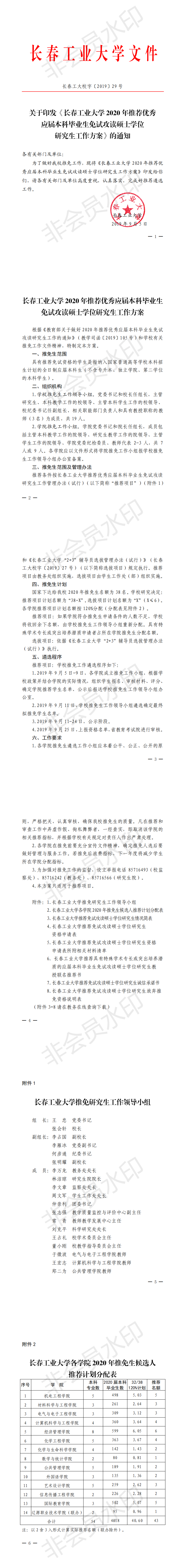 关于印发《长春工业大学2020年推荐优秀应届本科毕业生免试攻读硕士学位研究生工作方案》的通知
