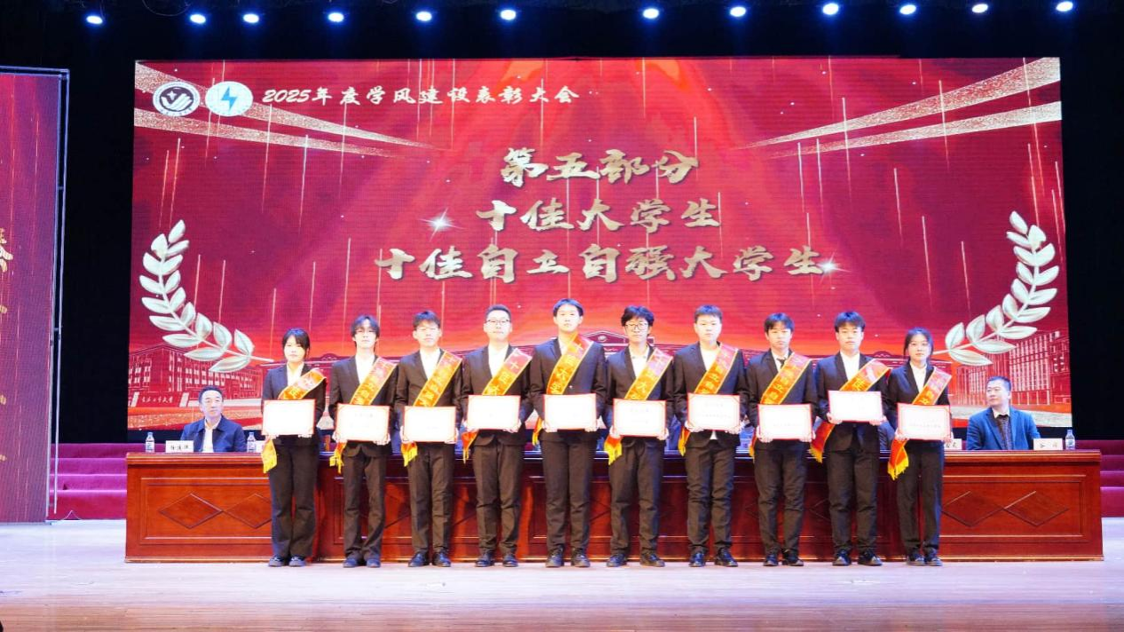 为充分发挥先进典型、模范人物的示范引领作用,激励各级团组织、班级及全院学生以更加坚定的信念、更加强烈的担当、更加饱满的热情投身学院高质量发展,学院决定对王佳硕等10名“十佳大学生”、张振等10名“十佳自立自强大学生”、朱亦凡等10名“学习楷模”、王敬淇等12名“学习之星”、平如慧等7名“单科状元之星”、何易桦等10名“学习进步之星”、杨熠等10名“优秀学生干部”、王博等10名“优秀团干部”、绳国兵等10名“文明大学生”、文栋等10名“奉献之星”、刘建明等10名“科技创新先进个人”、陈博诚等7名“文体活动先进个人”、肖博雅等5名“志愿服务活动先进个人”、20240401班团支部等4个先进团支部、20240405班等4个“优良学风班级”、南湖6栋424室等10个“文明寝室”、程帅智等10名“优秀研究生干部”、马飞龙等7名“科技青年(研究生)”、程云龙等9名“研究型科技青年(研究生)”、王帅等4名“学习之星(研究生)”予以表彰,与会领导依次为获奖集体和个人颁发了奖状和证书。