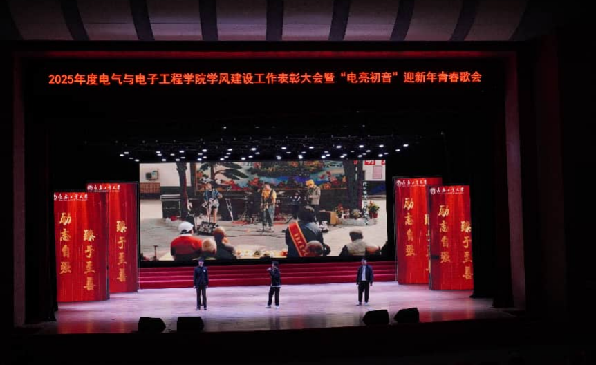 在南湖校区大学生活动中心举行2025年度学风建设工作表彰大会暨“电亮初音”迎新年青春歌会。校党委副书记吴成章出席大会并为受表彰代表颁奖。党委宣传部、学生处、安全处、教务处、招生就业处、研究生院及校团委等部门负责人出席活动并为获奖学生先进集体和优秀个人代表颁奖。